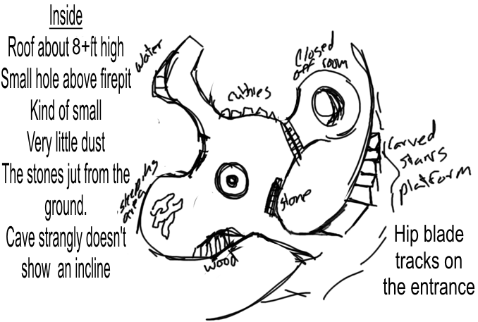 ((Alright, I’m just going round stuff. About two hours from waking to getting back to the cave. Kay? Now I’m going to go with a little over six hours from when she get’s back to the cave. So Silthy could get almost 7 hours. Cave ))
